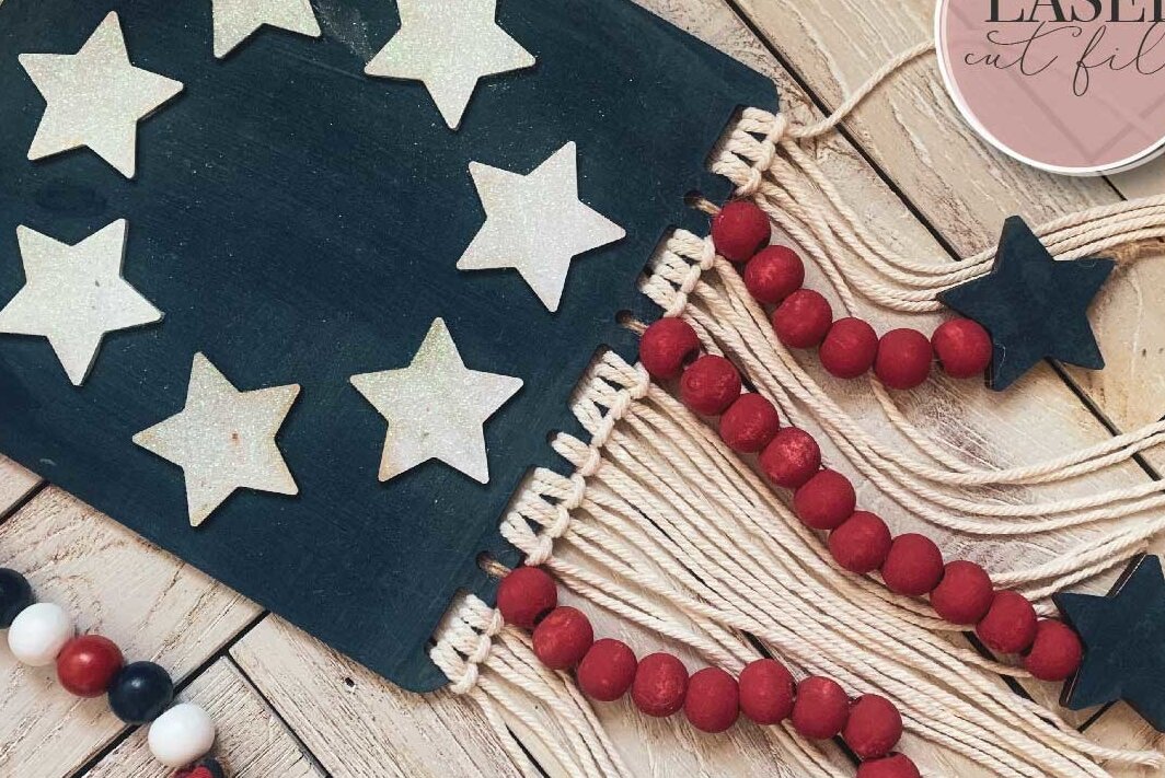 Intra απο ξύλο plywood 3mm-4mm πάχος American Flag Macrame Δίασταση 30×20 cm INTRAFABR-75009507