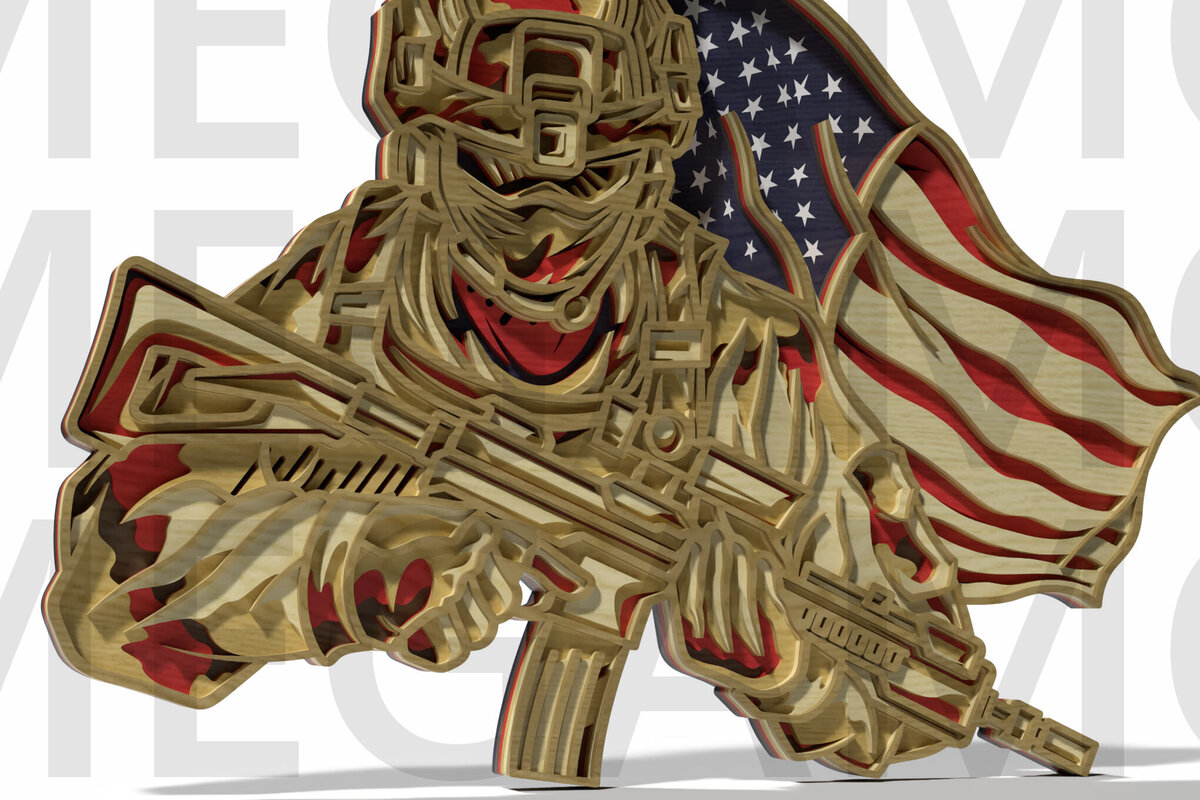 Intra απο ξύλο plywood 3mm-4mm πάχος American Soldier Layered Design Δίασταση 30×20 cm INTRAFABR-121878403
