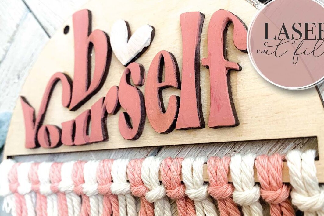 Intra απο ξύλο plywood 3mm-4mm πάχος Be Yourself , Macrame Wall Hanging Δίασταση 40×40 cm INTRAFABR-74729546