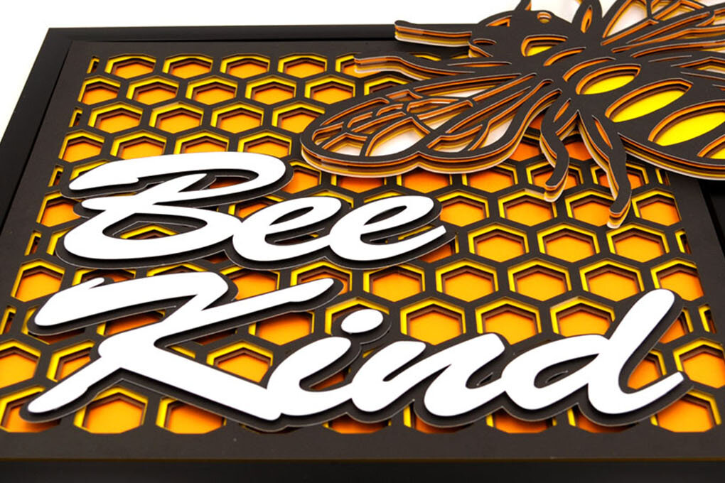 Intra απο ξύλο plywood 3mm-4mm πάχος Bee Kind BeeHive 3D Layered Shadowbox Δίασταση 20×30 cm INTRAFABR-28070354