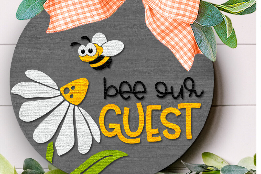 Intra απο ξύλο plywood 3mm-4mm πάχος Bee Our Guest , Πινακίδα πόρτας με στρώσεις Δίασταση 30×20 cm INTRAFABR-116285231