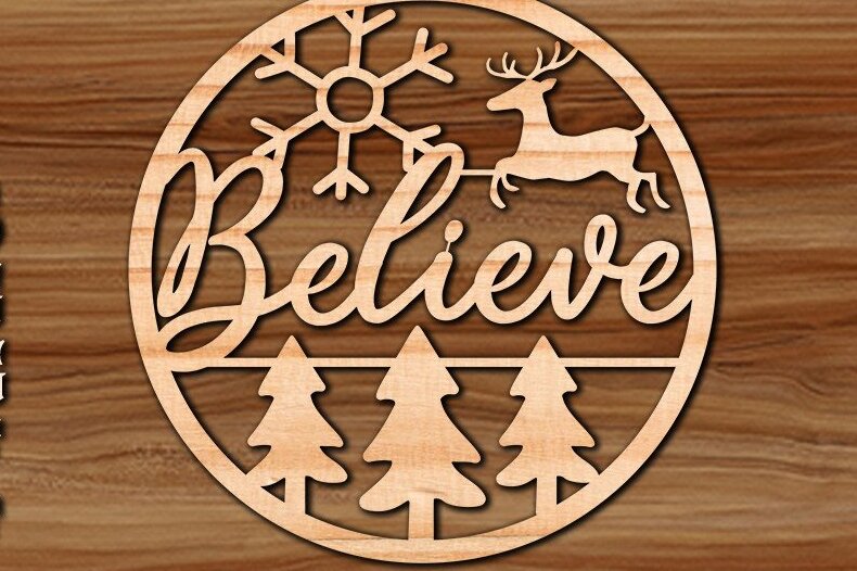 Intra απο ξύλο plywood 3mm-4mm πάχος Believe Ornaments Glowforge Δίασταση 8×8 cm INTRAFABR-41586345