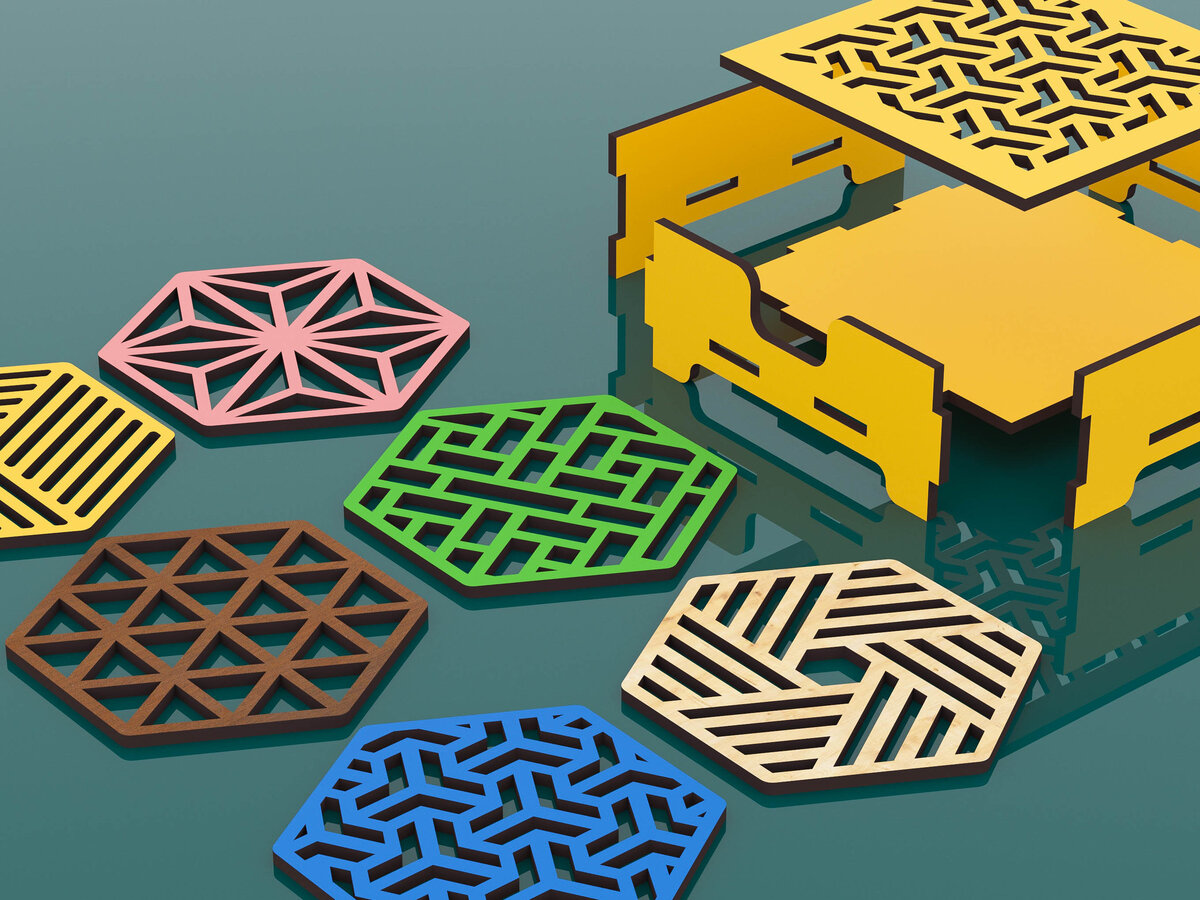 Intra απο ξύλο plywood 3mm-4mm πάχος Boxes Coaster 6 Style Δίασταση 15×15 cm INTRAFABR-64823407