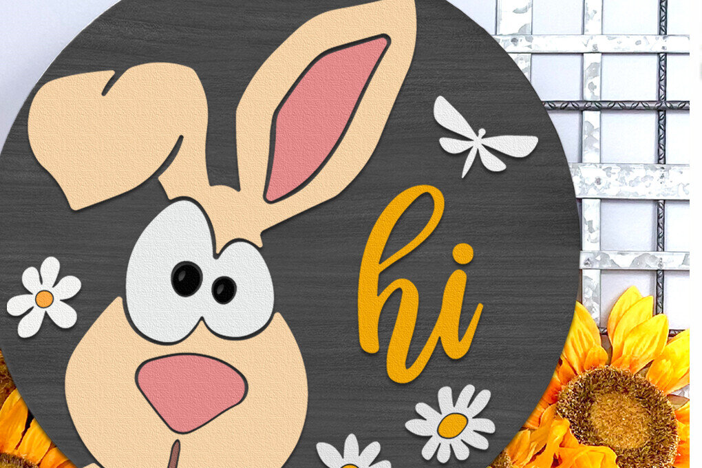 Intra απο ξύλο plywood 3mm-4mm πάχος Bunny Hi , Πασχαλινή επιγραφή πόρτας Δίασταση 15×15 cm INTRAFABR-114554912