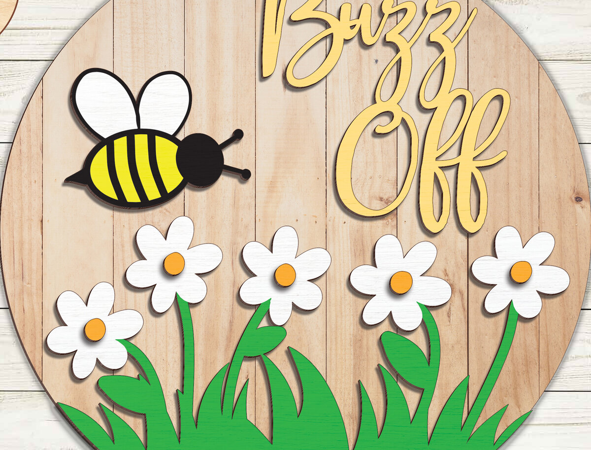 Intra απο ξύλο plywood 3mm-4mm πάχος Buzz off Daisy Bee Sign – Break Jhon Δίασταση 30×30 cm INTRAFABR-95127592