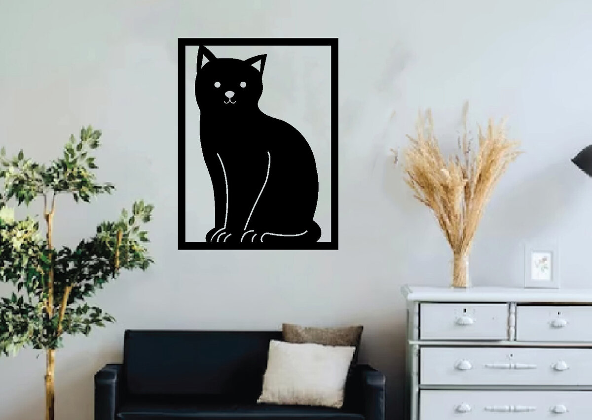 Intra απο ξύλο plywood 3mm-4mm πάχος Cat Metal Wall Art, Cat Hanging Wall Art Δίασταση 40×40 cm INTRAFABR-64489470