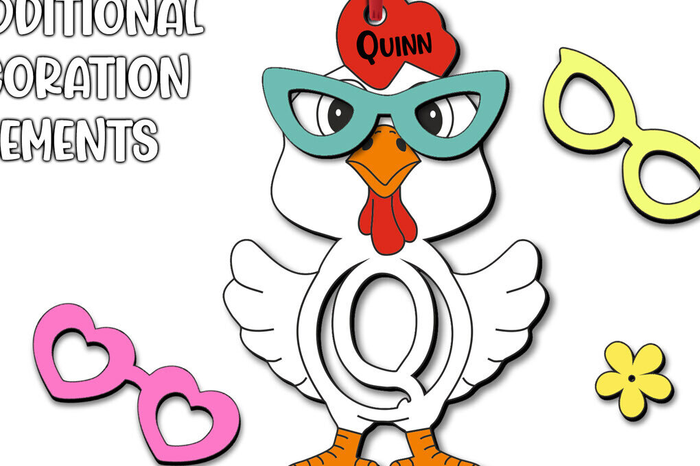 Intra απο ξύλο plywood 3mm-4mm πάχος Chicken Letter Q Πασχαλινό Όνομα καλαθιού Δίασταση 8×8 cm INTRAFABR-113952079