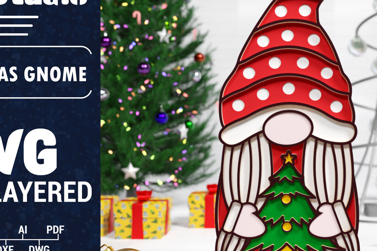 Intra απο ξύλο plywood 3mm-4mm πάχος Christmas Gnome Multilayered PaperCut Bu Δίασταση 1500×1500 cm INTRAFABR-75511662