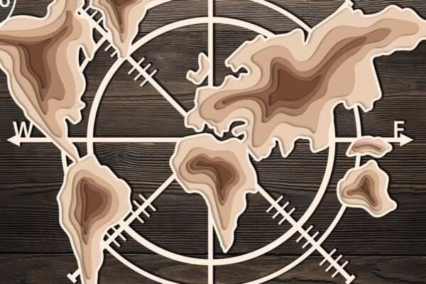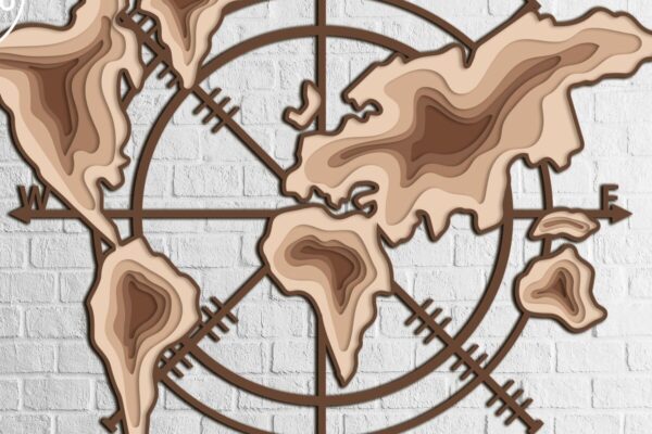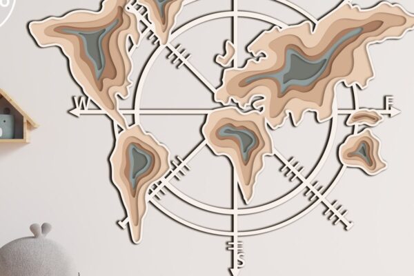 Intra απο ξύλο plywood Χρώμα wenge 3mm-4mm πάχος – COMPASS MAP Έργο κοπής ξύλου με λέιζερ Δίασταση 32×27 cm INTRAFABR-25985754