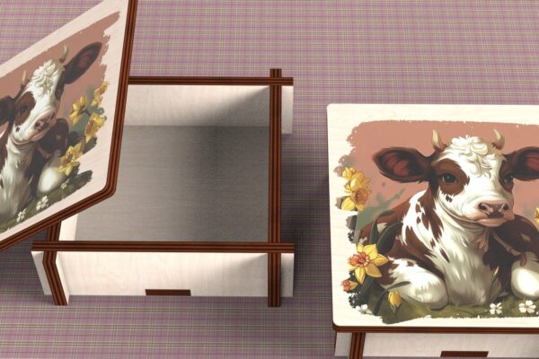 Intra απο ξύλο plywood 3mm-4mm πάχος – Cow Box + 4 PNG για Εξάχνωση Δίασταση 9×9 cm INTRAFABR-120328458