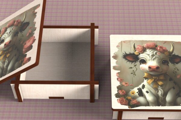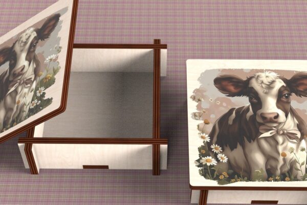Intra απο ξύλο plywood 3mm-4mm πάχος – Cow Box + 4 PNG για Εξάχνωση Δίασταση 9×9 cm INTRAFABR-120328493