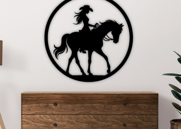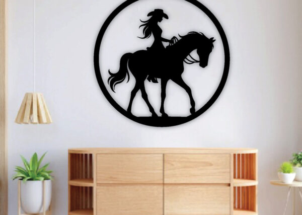 Intra απο ξύλο plywood 3mm-4mm πάχος – Cowgirl Horse Laser Cut Metal Sign, DXF Δίασταση 40×50 cm INTRAFABR-96743492