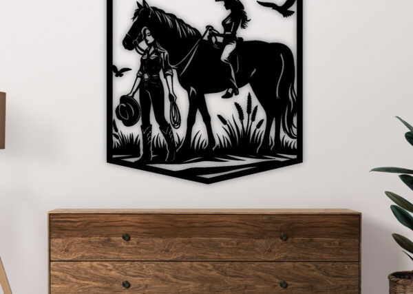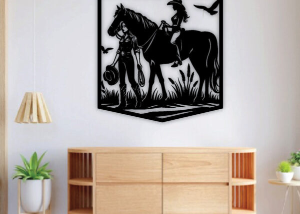 Intra απο ξύλο plywood 3mm-4mm πάχος – Cowgirl Horse Laser Cut Metal Sign, DXF Δίασταση 40×50 cm INTRAFABR-96743567