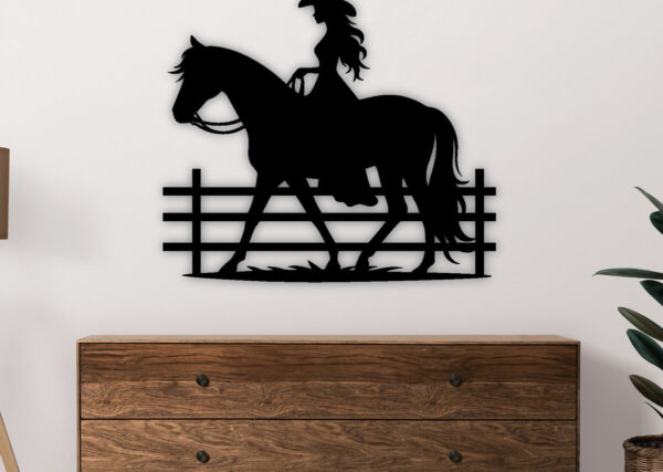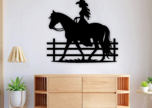 Intra απο ξύλο plywood Χρώμα wenge 3mm-4mm πάχος – Cowgirl Horse Metal Sign, DXF Δίασταση 40×50 cm INTRAFABR-85391546