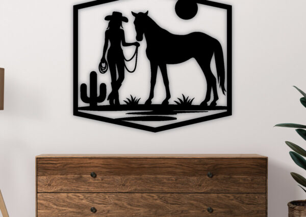 Intra απο ξύλο plywood Χρώμα wenge 3mm-4mm πάχος – Cowgirl Horse Metal Sign, DXF Δίασταση 40×50 cm INTRAFABR-85391495