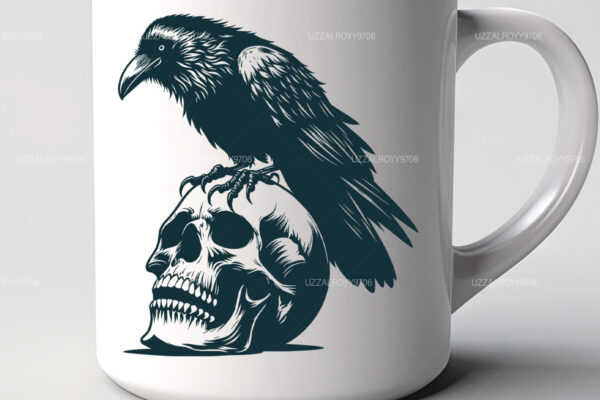 Intra απο ξύλο plywood 3mm-4mm πάχος – Crow on a Skull , Raven Skull Δίασταση 40×50 cm INTRAFABR-99092930