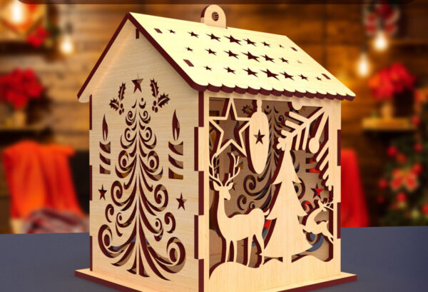 Intra απο ξύλο plywood 3mm-4mm πάχος Cut Χριστουγεννιάτικου Σπίτι με λέιζερ02 Δίασταση 15×15 cm INTRAFABR-82065046