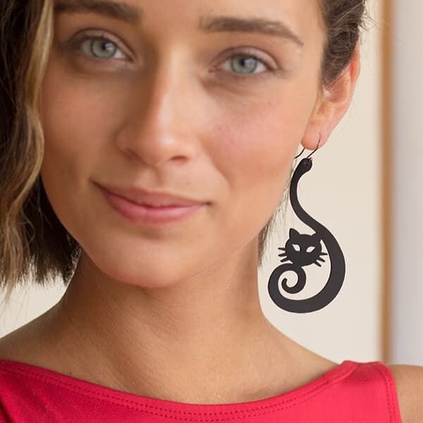 Intra απο ξύλο plywood 3mm-4mm πάχος – Cute Cat Earrings Cat Jewelry Δίασταση 3×3 cm Intraeaxys-075yp3po