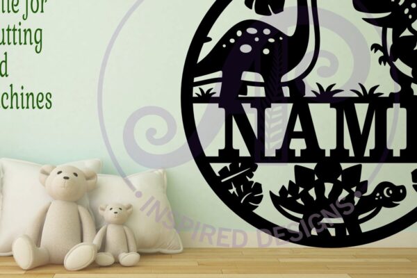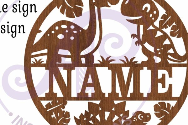 Intra απο ξύλο plywood 3mm-4mm πάχος – Cute Dinos Name Sign Laser Δίασταση 30×20 cm INTRAFABR-104404897