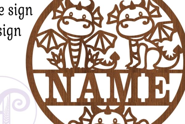 Intra απο ξύλο plywood 3mm-4mm πάχος – Cute Dragons Όνομα Σήμα Laser Cut Art Δίασταση 30×20 cm INTRAFABR-75281876