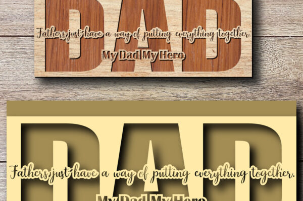Dad Laser Cut 2 Layers 3D Πρόκειται για ψηφιακό σχεδίου, ιδανικό για κοπή με ή plotter. Κατασκευασμένο απο Ξύλο από plywood [3mm ή 4mm], κομμένο με ακρίβεια στην βιοτεχνία Intrahome . Το φυσικό ξύλο προσφέρει μια κομψή, αυθεντική υφή και μπορεί εύκολα να βαφτεί ή να διακοσμηθεί σύμφωνα με το προσωπικό σας γούστο. Ελληνική παραγωγή – Κατασκευάζεται στην Ελλάδα με προσοχή στη λεπτομέρεια και υψηλές προδιαγραφές ποιότητας. ✔️ Υλικό: Plywood υψηλής ποιότητας ✔️ Διατίθεται σε πάχος 3mm ή 4mm ✔️ Ελαφρύ, ανθεκτικό και εύκολο στη χρήση ✔️ Ιδανικό για βάψιμο, χάραξη, κόλληση και χειροτεχνίες ✔️ Κατάλληλο για μπομπονιέρες, διακόσμηση, δώρα και DIY projects ✅ Εγγύηση 2 ετών – Σε περίπτωση σπασίματος, η αντικατάσταση γίνεται άμεσα, χάρη στην τοπική ελληνική παραγωγή μας. Ιδανικό για δημιουργικούς ανθρώπους που αγαπούν το DIY. Μπορεί να γίνει ξεχωριστό δώρο με προσωπικό χαρακτήρα. Φέρνει “χειροποίητη” αισθητική στη διακόσμηση. -files- Ελληνική χειροποίητη παραγωγή → στηρίζετε τοπικούς δημιουργούς. Κάθε κομμάτι έχει τη δική του φυσική ξύλινη υφή (μοναδικότητα). Δυνατότητα ειδικής παραγγελίας (άλλα μεγέθη / σχήματα). Άμεση ανταπόκριση & υποστήριξη. Εγγύηση αντικατάστασης (ήδη το έχεις). Μπορεί να μετατραπεί σε προσωποποιημένο αντικείμενο με χάραξη ή χρώμα. -files– Μη τοξικό υλικό → ασφαλές για παιδιά (με επίβλεψη). Ελαφρύ και εύκολο στη μεταφορά. Συσκευάζεται με προστασία για να φτάνει πάντα άθικτο. -files–files- Ιδανικό για event planners, καταστήματα ειδών δώρου, κατασκευαστές . Διατίθεται σε χονδρική με ειδικές τιμές & εκπτώσεις σε ποσότητα. Ανοιχτές Αποχρώσεις