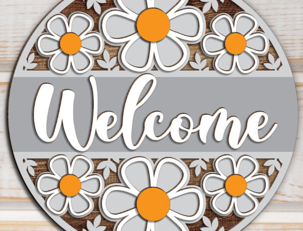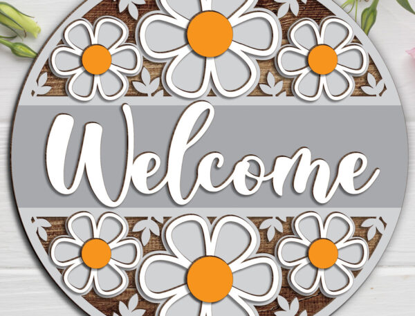 Intra απο ξύλο plywood Χρώμα wenge 3mm-4mm πάχος – Daisy Welcome Door Hanger Δίασταση 30×20 cm INTRAFABR-27391148