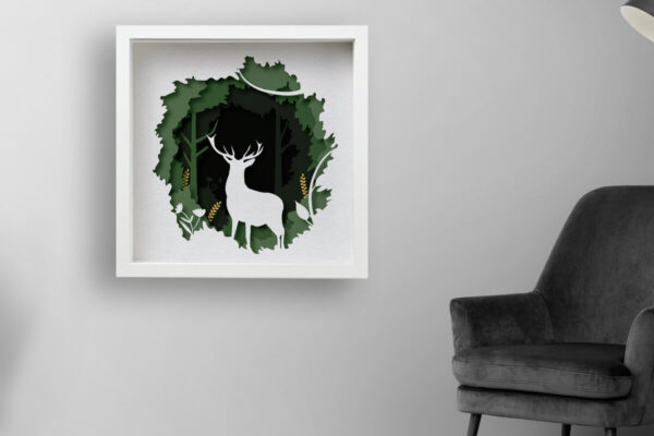 Intra απο ξύλο plywood Χρώμα wenge 3mm-4mm πάχος – Deer Forest Shadow Box , 3D Mandala Δίασταση 25×25 cm INTRAFABR-119192223