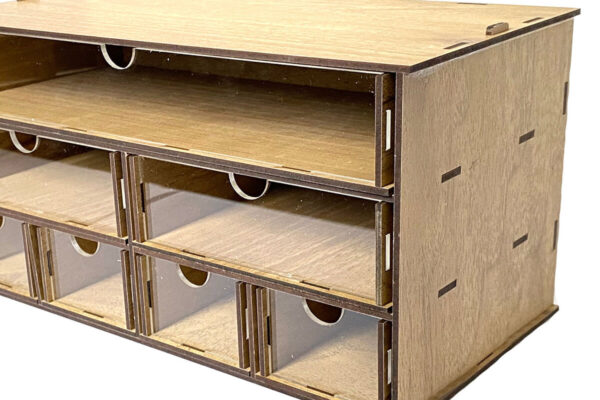 Desktop Organizer , Hobby Storage Box Πρόκειται για ψηφιακό σχεδίου, ιδανικό για κοπή με ή plotter. Κατασκευασμένο απο Ξύλο από plywood [3mm ή 4mm], κομμένο με ακρίβεια στην βιοτεχνία Intrahome . Το φυσικό ξύλο προσφέρει μια κομψή, αυθεντική υφή και μπορεί εύκολα να βαφτεί ή να διακοσμηθεί σύμφωνα με το προσωπικό σας γούστο. Ελληνική παραγωγή – Κατασκευάζεται στην Ελλάδα με προσοχή στη λεπτομέρεια και υψηλές προδιαγραφές ποιότητας. ✔️ Υλικό: Plywood υψηλής ποιότητας ✔️ Διατίθεται σε πάχος 3mm ή 4mm ✔️ Ελαφρύ, ανθεκτικό και εύκολο στη χρήση ✔️ Ιδανικό για βάψιμο, χάραξη, κόλληση και χειροτεχνίες ✔️ Κατάλληλο για μπομπονιέρες, διακόσμηση, δώρα και DIY projects ✅ Εγγύηση 2 ετών – Σε περίπτωση σπασίματος, η αντικατάσταση γίνεται άμεσα, χάρη στην τοπική ελληνική παραγωγή μας. Ιδανικό για δημιουργικούς ανθρώπους που αγαπούν το DIY. Μπορεί να γίνει ξεχωριστό δώρο με προσωπικό χαρακτήρα. Φέρνει “χειροποίητη” αισθητική στη διακόσμηση. -files- Ελληνική χειροποίητη παραγωγή → στηρίζετε τοπικούς δημιουργούς. Κάθε κομμάτι έχει τη δική του φυσική ξύλινη υφή (μοναδικότητα). Δυνατότητα ειδικής παραγγελίας (άλλα μεγέθη / σχήματα). Άμεση ανταπόκριση & υποστήριξη. Εγγύηση αντικατάστασης (ήδη το έχεις). Μπορεί να μετατραπεί σε προσωποποιημένο αντικείμενο με χάραξη ή χρώμα. -files– Μη τοξικό υλικό → ασφαλές για παιδιά (με επίβλεψη). Ελαφρύ και εύκολο στη μεταφορά. Συσκευάζεται με προστασία για να φτάνει πάντα άθικτο. -files–files- Ιδανικό για event planners, καταστήματα ειδών δώρου, κατασκευαστές . Διατίθεται σε χονδρική με ειδικές τιμές & εκπτώσεις σε ποσότητα. Ανοιχτές Αποχρώσεις