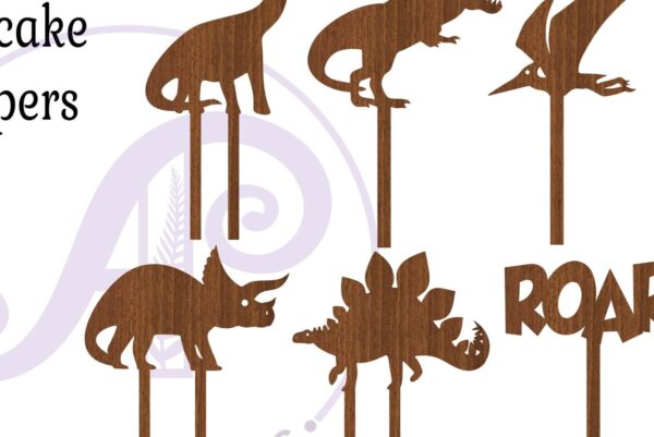 Intra απο ξύλο plywood Χρώμα wenge 3mm-4mm πάχος – Dinosaur Cupcake Toppers, 6 Σχέδια Δίασταση 30×20 cm INTRAFABR-72020626