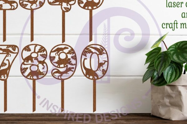 Intra απο ξύλο plywood Χρώμα wenge 3mm-4mm πάχος – Dinosaur Number Cake Toppers Cut Δίασταση 30×20 cm INTRAFABR-25595900