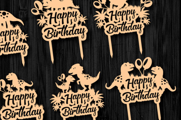 Intra απο ξύλο plywood 3mm-4mm πάχος – Dinosaurs Happy Birthday Topper Bundle Δίασταση 20×20 cm INTRAFABR-65746769