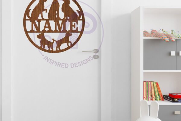 Intra απο ξύλο plywood Χρώμα wenge 3mm-4mm πάχος – Dogs Silhouette Name Laser Δίασταση 30×20 cm INTRAFABR-118470102