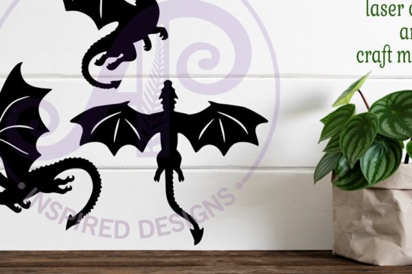 Intra απο ξύλο plywood 3mm-4mm πάχος – Dragons Silhouette Laser Cut Shape 2 Δίασταση 30×20 cm INTRAFABR-113547223