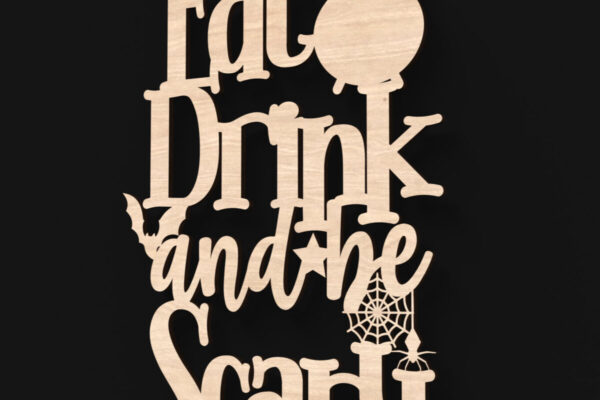 Intra απο ξύλο plywood Χρώμα wenge 3mm-4mm πάχος – Eat Drink and Be Scary Laser Sign Δίασταση 15×15 cm INTRAFABR-72009187