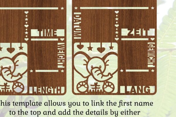 Elephant Baby Stats, Πλακέτα γέννησης Πρόκειται για ψηφιακό σχεδίου, ιδανικό για κοπή με ή plotter. Κατασκευασμένο απο Ξύλο από plywood [3mm ή 4mm], κομμένο με ακρίβεια στην βιοτεχνία Intrahome . Το φυσικό ξύλο προσφέρει μια κομψή, αυθεντική υφή και μπορεί εύκολα να βαφτεί ή να διακοσμηθεί σύμφωνα με το προσωπικό σας γούστο. Ελληνική παραγωγή – Κατασκευάζεται στην Ελλάδα με προσοχή στη λεπτομέρεια και υψηλές προδιαγραφές ποιότητας. ✔️ Υλικό: Plywood υψηλής ποιότητας ✔️ Διατίθεται σε πάχος 3mm ή 4mm ✔️ Ελαφρύ, ανθεκτικό και εύκολο στη χρήση ✔️ Ιδανικό για βάψιμο, χάραξη, κόλληση και χειροτεχνίες ✔️ Κατάλληλο για μπομπονιέρες, διακόσμηση, δώρα και DIY projects ✅ Εγγύηση 2 ετών – Σε περίπτωση σπασίματος, η αντικατάσταση γίνεται άμεσα, χάρη στην τοπική ελληνική παραγωγή μας. Ιδανικό για δημιουργικούς ανθρώπους που αγαπούν το DIY. Μπορεί να γίνει ξεχωριστό δώρο με προσωπικό χαρακτήρα. Φέρνει “χειροποίητη” αισθητική στη διακόσμηση. -files- Ελληνική χειροποίητη παραγωγή → στηρίζετε τοπικούς δημιουργούς. Κάθε κομμάτι έχει τη δική του φυσική ξύλινη υφή (μοναδικότητα). Δυνατότητα ειδικής παραγγελίας (άλλα μεγέθη / σχήματα). Άμεση ανταπόκριση & υποστήριξη. Εγγύηση αντικατάστασης (ήδη το έχεις). Μπορεί να μετατραπεί σε προσωποποιημένο αντικείμενο με χάραξη ή χρώμα. -files– Μη τοξικό υλικό → ασφαλές για παιδιά (με επίβλεψη). Ελαφρύ και εύκολο στη μεταφορά. Συσκευάζεται με προστασία για να φτάνει πάντα άθικτο. -files–files- Ιδανικό για event planners, καταστήματα ειδών δώρου, κατασκευαστές . Διατίθεται σε χονδρική με ειδικές τιμές & εκπτώσεις σε ποσότητα. Ανοιχτές Αποχρώσεις