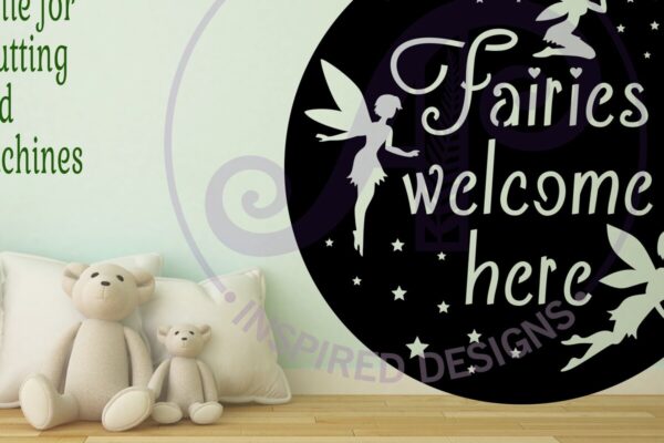 Intra απο ξύλο plywood Χρώμα wenge 3mm-4mm πάχος – Fairies Welcome Here Επιτοίχια επιγραφή, Δίασταση 30×20 cm INTRAFABR-47240742