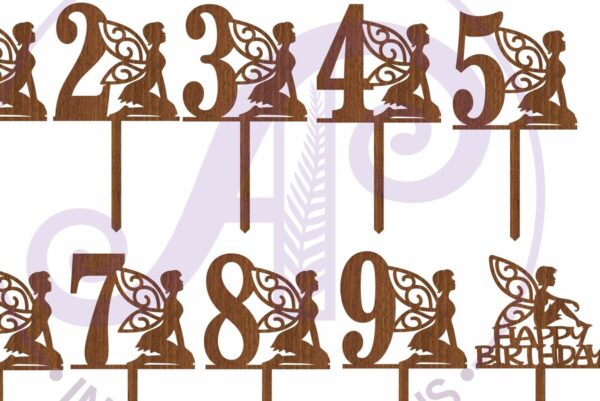 Intra απο ξύλο plywood 3mm-4mm πάχος – Fairy Number Cake Toppers, 10 σχέδια Δίασταση 20×20 cm INTRAFABR-104580198