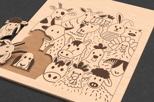 Intra απο ξύλο plywood Χρώμα wenge 3mm-4mm πάχος – Farm Puzzle | Ξύλινο παιχνίδι ζώων Δίασταση 30×20 cm INTRAFABR-23770969