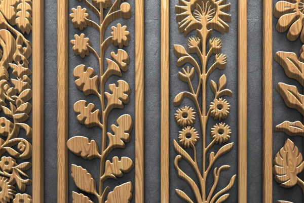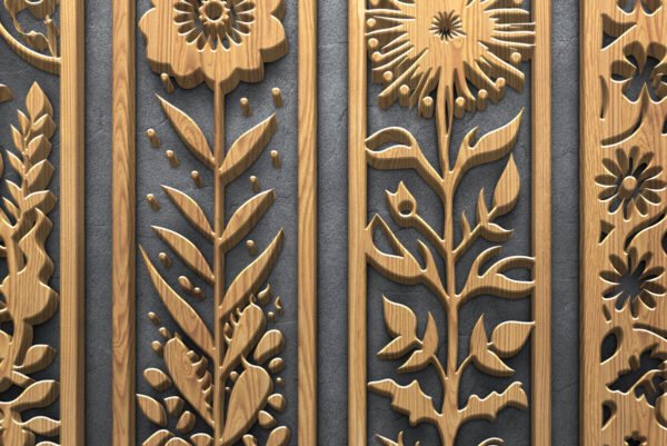 Intra απο ξύλο plywood 3mm-4mm πάχος – Floral κάθετα πάνελ κοπής με λέιζερ Δίασταση 3200×7200 cm INTRAFABR-124638256
