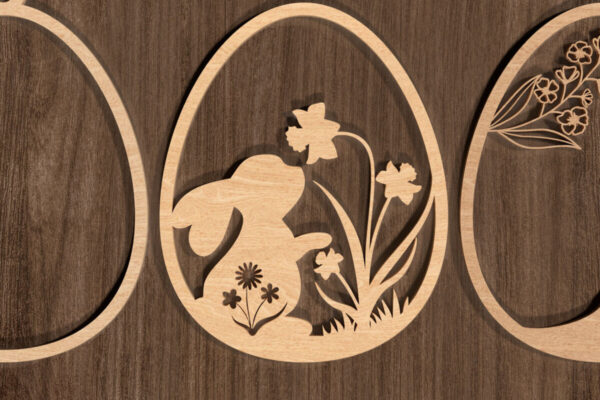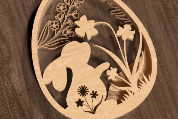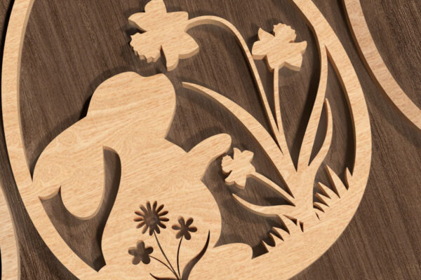 Intra απο ξύλο plywood Χρώμα wenge 3mm-4mm πάχος – Floral λαγουδάκι πασχαλινό στολίδι Δίασταση 6×6 cm INTRAFABR-82762192