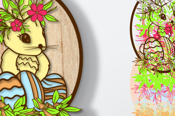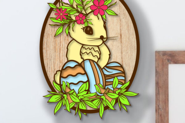 Intra απο ξύλο plywood Χρώμα wenge 3mm-4mm πάχος – Floral Πασχαλινό Λαγουδάκι 3D Πολυστρωματικό Δίασταση 15×15 cm INTRAFABR-36321247