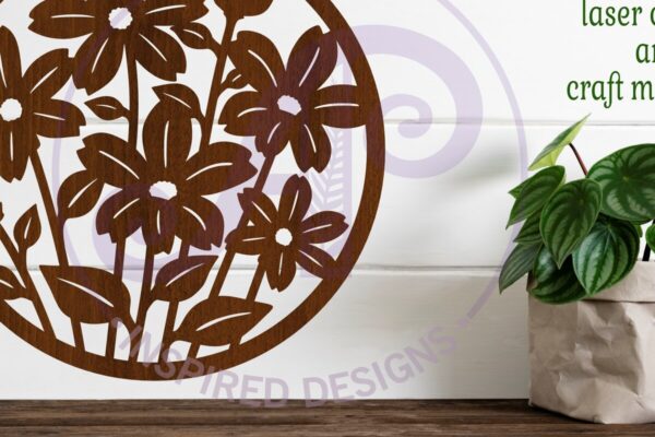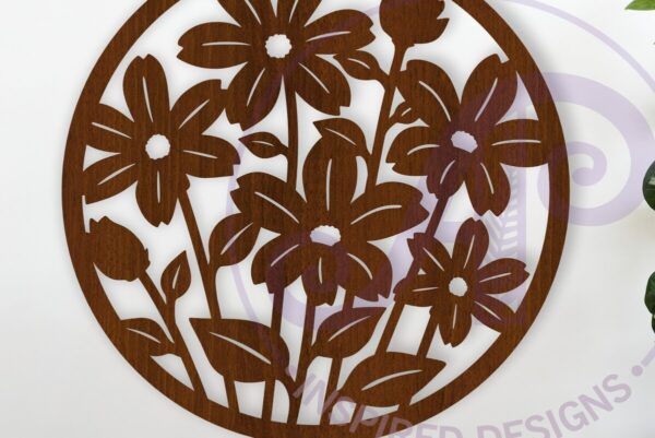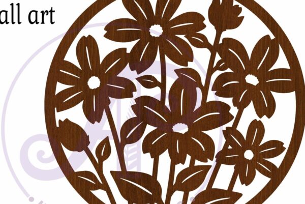Intra απο ξύλο plywood Χρώμα wenge 3mm-4mm πάχος – Floral 6 Πέταλα Λουλούδι επιγραφή, Δίασταση 40×50 cm INTRAFABR-112033998
