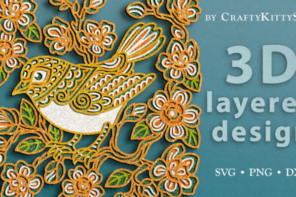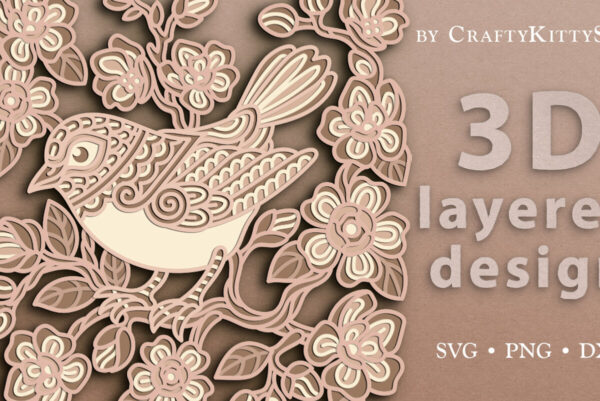 Intra απο ξύλο plywood Χρώμα wenge 3mm-4mm πάχος – Floral Bird 3D Layered Cut Δίασταση 30×20 cm INTRAFABR-61050344
