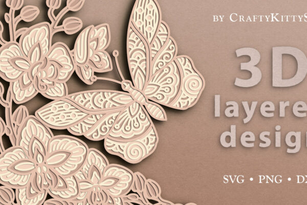 Intra απο ξύλο plywood 3mm-4mm πάχος – Floral Butterfly 3D Layered Cut Δίασταση 30×20 cm INTRAFABR-38078507