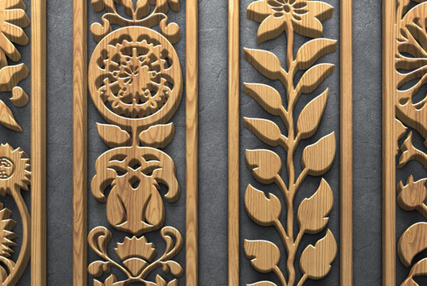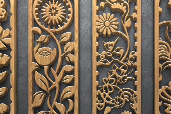 Intra απο ξύλο plywood Χρώμα wenge 3mm-4mm πάχος – Floral CNC κάθετα ξύλινα πάνελ Δίασταση 3200×7200 cm INTRAFABR-112447209