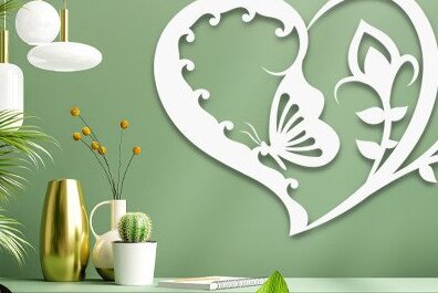 Intra απο ξύλο plywood Χρώμα wenge 3mm-4mm πάχος – Floral Heart Butterfly Δίασταση 20×20 cm INTRAFABR-82463339