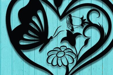 Intra απο ξύλο plywood Χρώμα wenge 3mm-4mm πάχος – Floral Heart Butterfly Δίασταση 20×20 cm INTRAFABR-119881408