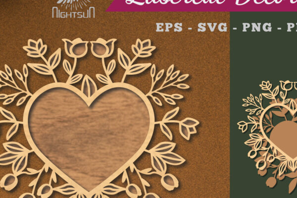 Intra απο ξύλο plywood Χρώμα wenge 3mm-4mm πάχος – Floral Heart Decoration 5 Δίασταση 20×20 cm INTRAFABR-120688540
