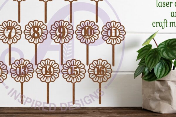 Intra απο ξύλο plywood Χρώμα wenge 3mm-4mm πάχος – Flower Number Cake Toppers, 16 σχέδια Δίασταση 30×20 cm INTRAFABR-109026882