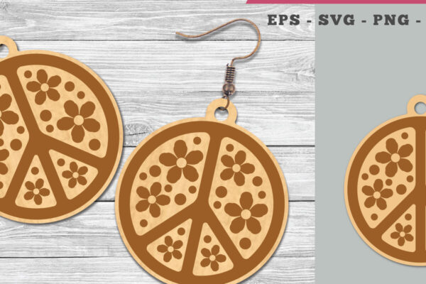 Intra απο ξύλο plywood Χρώμα wenge 3mm-4mm πάχος – Flower Peace κομμένα σκουλαρίκια με λέιζερ 2 Δίασταση 3×3 cm INTRAFABR-105856997